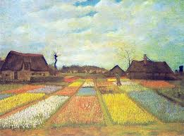 In describing the spaces I had finished, I just came up with ‘you know the far section, the boomerang shape’. This experience led me to think about how of landscapes, farms and gardens are organized in lines, colors and shapes and then thought of Artist’s connections in their works of Art. Van Gogh’s fields of flowers, tulip beds; Alma Thomas impressions of iris, tulips, jonquils & crocus. How could I incorporate this connection to nature for my students, create an awareness there is an Art to Landscaping, Farming and Gardening. How could they be given a physical experience to enhance the Visual Experience?