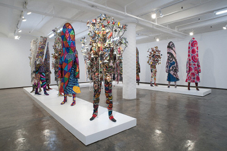 This October a new exhibit is coming to the Corcoran! 30 Americans will focus on identity: “30 Americans focuses on issues of racial, sexual, and historical identity in contemporary culture”. An assignment in one of my graduate classes involved responding to 12 categories within our own identity: Race, Gender, Religion, Geographical, Family, Age, Economic, Political, Recreational, Aesthetic, Occupational, and Health. The assignment was so valuable in the realization of seeing myself more than just a wife, sister, daughter neighbor, teacher and now student. It was interesting to discover the connections among a few, like loving to swim in Recreational and see that surface in my Aesthetic in using the colors of Sea Glass to decorate the house. Learning that I don’t like Aging because my hair color is changing and there is still lots of beautiful places to see on this planet!! It was also interesting to discover throughout my adult life in painting and using a place of reference in Narrative Art or Landscape has been the Geographical location of my Grandmothers house in Clayton, Georgia. If you were to ask yourself as we did in class in the 12 categories “How would you describe yourself, does this come up at work, is this important to you etc.” You just may find some interesting connections that you may not have been aware of and could bring to the surface of your present life. Check out Nick Cave! He will be part of the exhibition. His use of color, texture and music has inspired me and I will FLIP if we are fortunate to see him speak. His use of music is so motivating and these figures break down all of our exterior identities, at least that’s what this artsaysthat to me:)