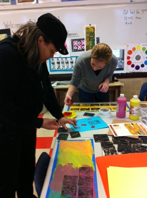 DC3 Collaborative is a group of 10 schools in our district that gather multiple times a year. When we gather we observe and share, then we go right back to our classrooms to incorporate best practices. The art teachers in our collaborative also have time to share approaches and we do that best by doing! I hosted the art teachers one of the professional development days by setting up a printmaking workshop.