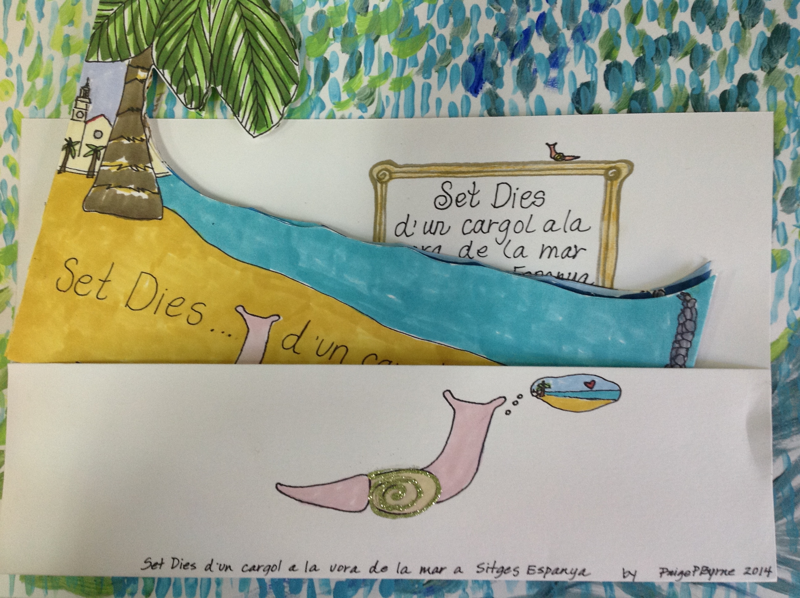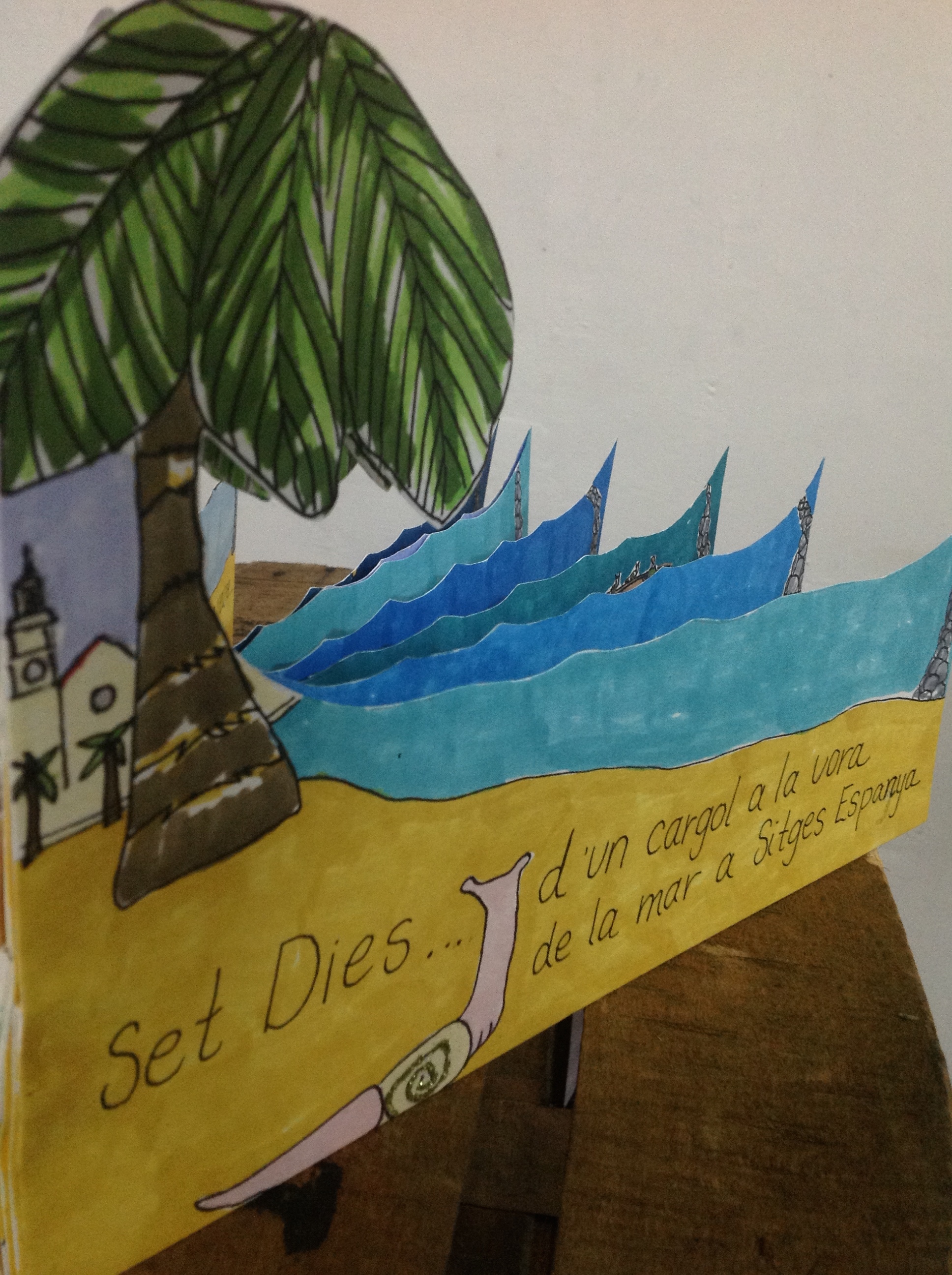 The small town of El Bruc at the base of Monserrat Mountains influenced much of my work, but I discovered Sitges a sweet/amazing…omg town…just a 20 min train ride from Barcelona. This place inspired the book Seven Days of a Snail by the Sea in Sitges. I donated this book to a local school called “Little Chair” named after one of the stones of Monserrat.