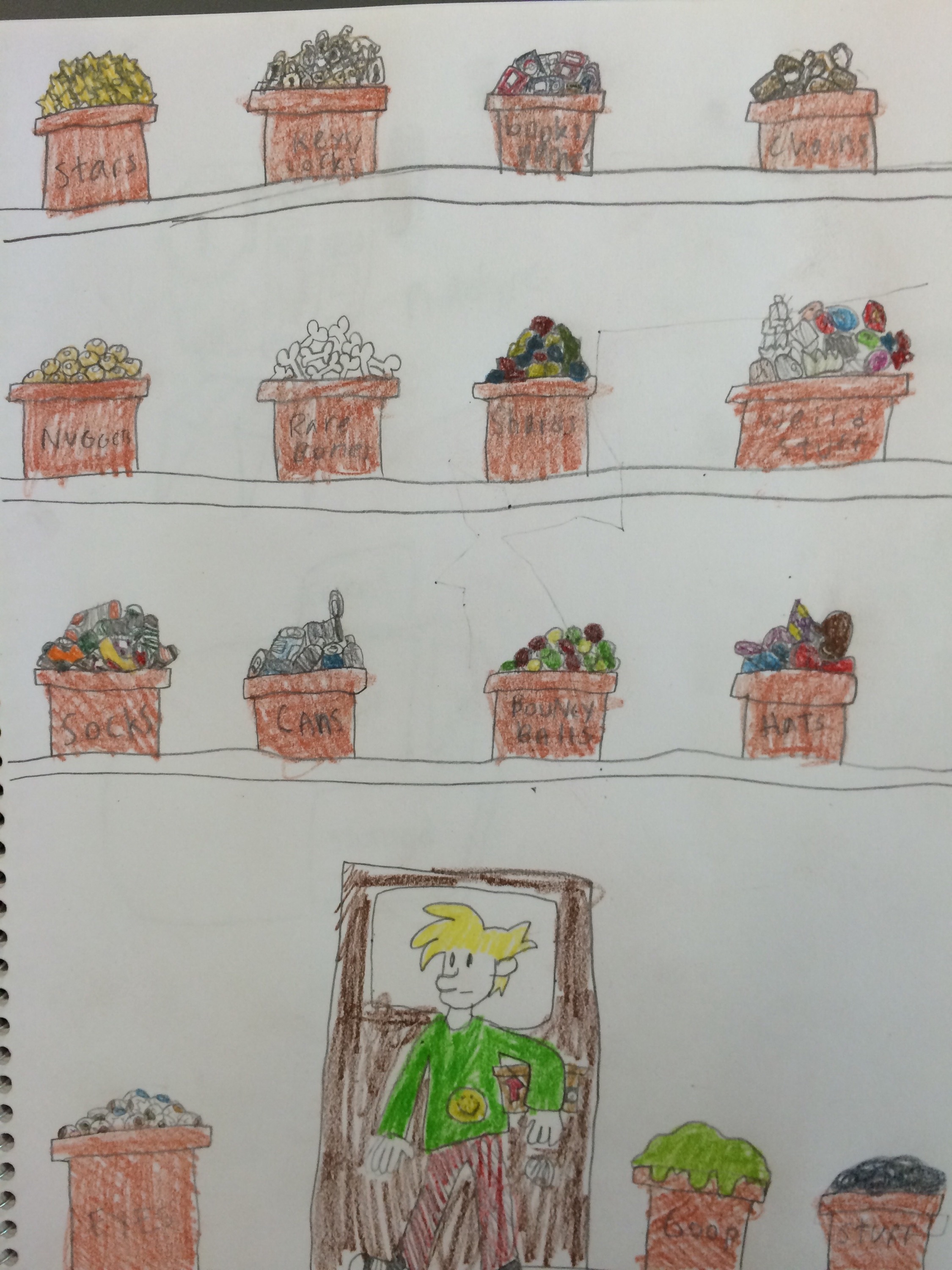Observe: two fifth graders planned well in observing materials that could be useful in planning a Fashion Trashion garment for the runway!
