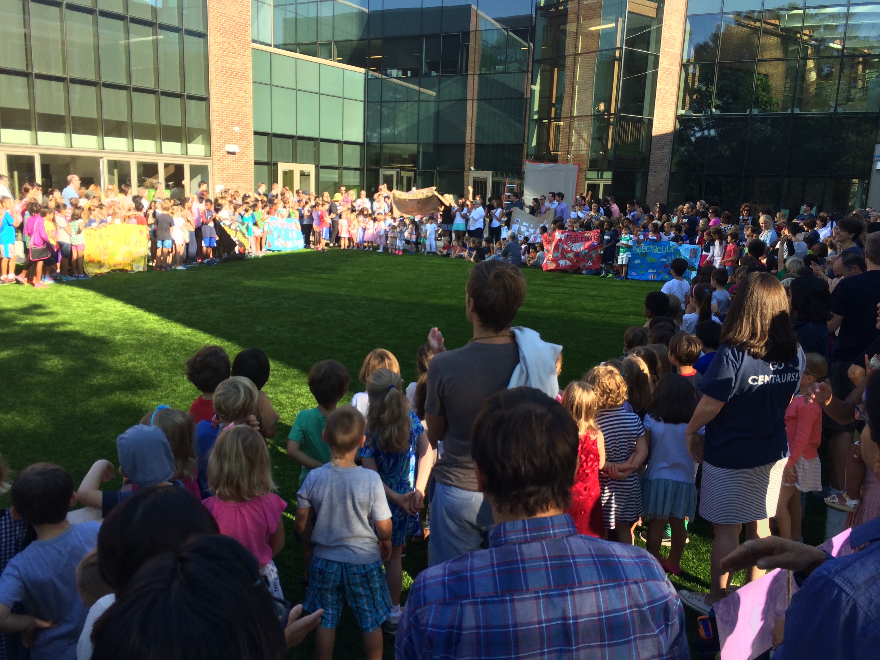Each class presents their banner with a pledge at the Banner Ceremony. This tradition started with the inspiration from Jane Menell, a former first grade teacher, collaborating with art to create large banners made of felt to welcome her students. I loved when Jane arrived to the studio with big rolls of colorful felt! Our principal Liz Whisnant recognizes the unity all classrooms could have in this annual experience. Adding music and dance with performing arts from Sarah Pace connects all Centaurs in our greater community. Thank you teachers for organizing the votes for the creatures and students on this celebratory day!