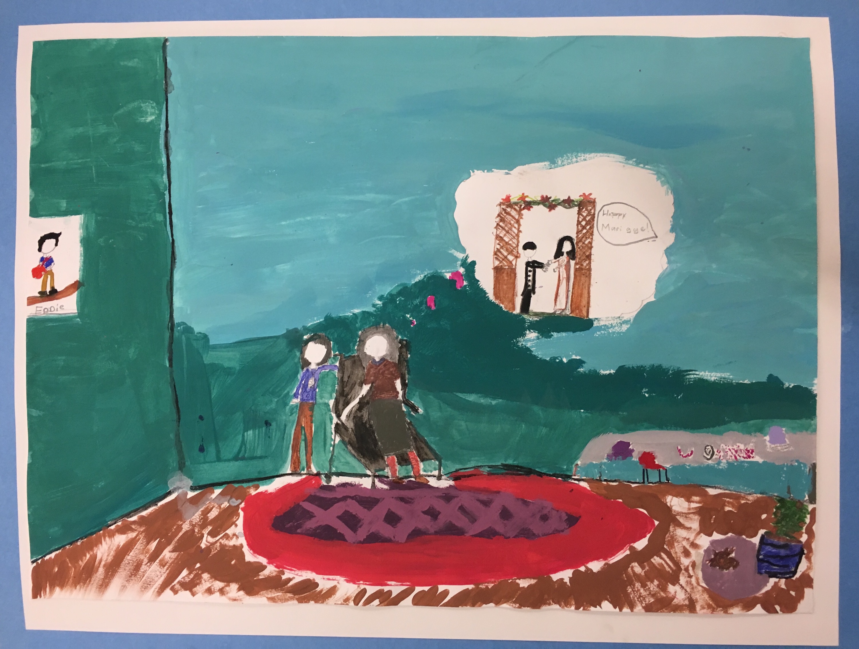 A tradition of illustrating the memories of Grand Oaks residents by our fifth grade takes place each year. The tradition entails three visits by our students to interview the senior citizens. Sounds beautiful and easy, but sometimes there is a need to reschedule or student may have to sacrifice an idea. This experience overall holds great meaning for the student and the senior. In visiting one day, I was able to witness the great calm as a student heard some challenges experienced in one’s life and the pride of knowing exactly how to find the senior and share the special collection of ballerina slippers. Our students became great listeners, illustrators and caring individuals. Their skill in teamwork and creating art with meaning is outstanding!