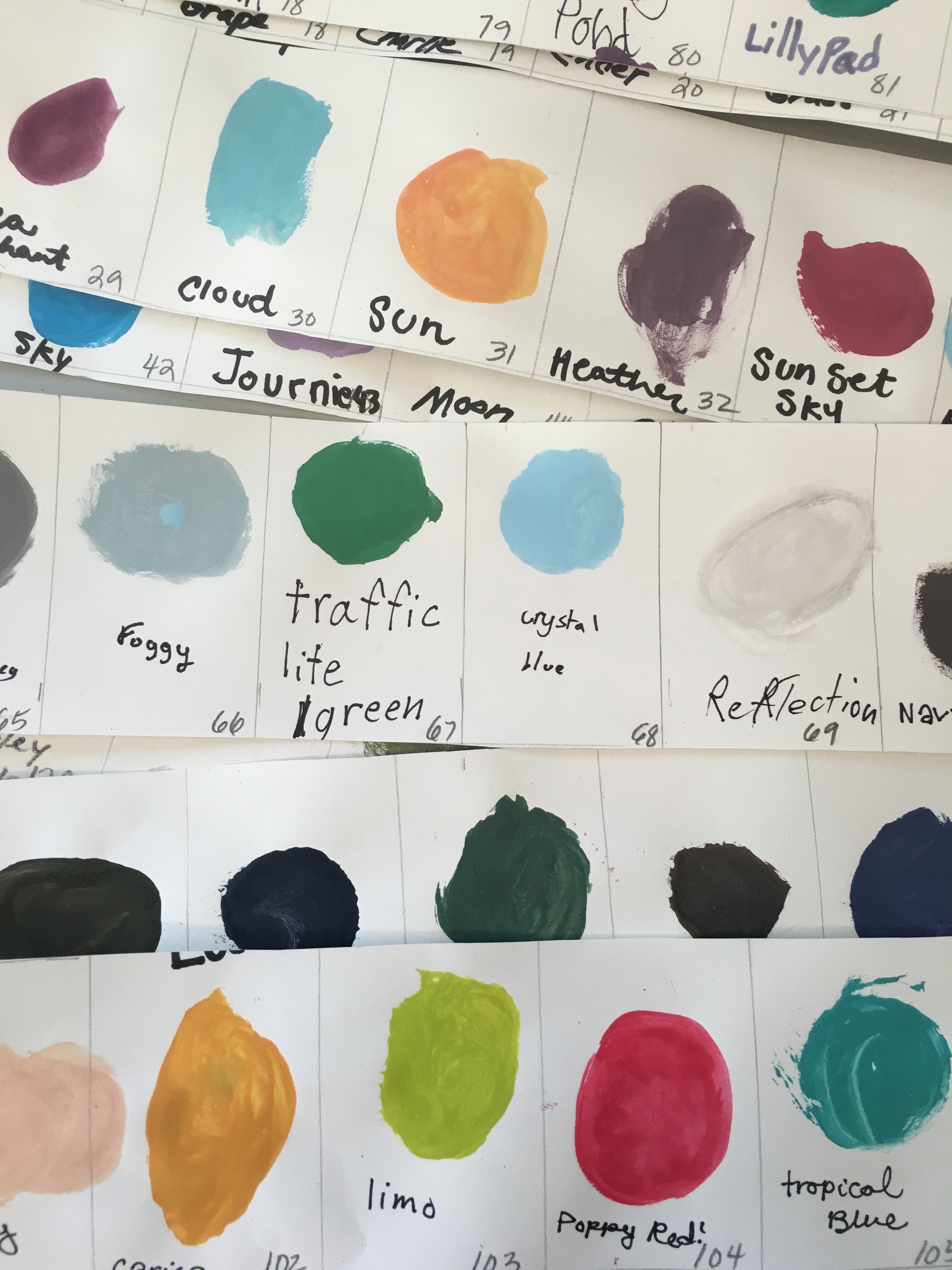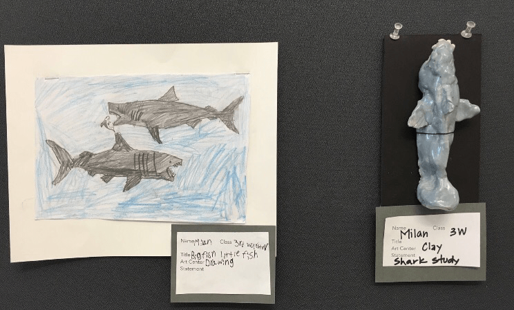 And reflect upon how great elementary students respond to contemporary art. In the spring, Students viewed Diebenkorn’s work and we talked about collecting colors in our community. This work reminded me of the 100 color challenge for 100th day of school. Students used cute & clever names for their tints and shades!