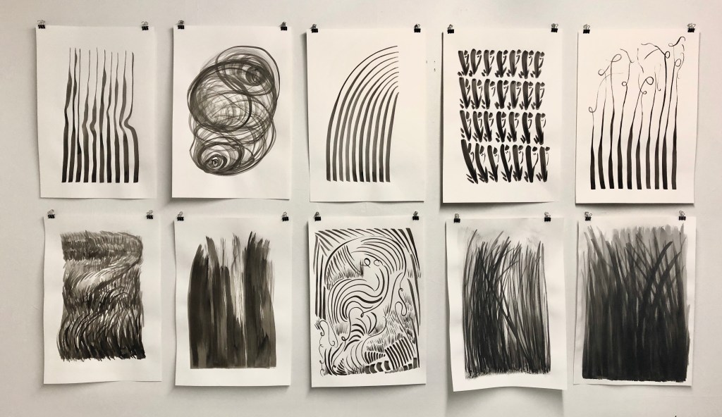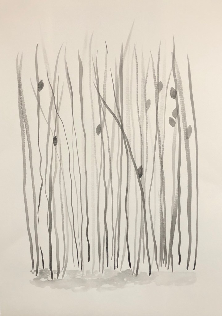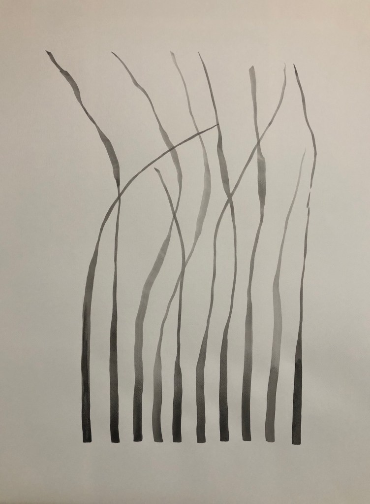 A place to run, sit to imagine while snipping off the heads of Timothy grass formed my love of this space. This bright green blade is a line that takes my work to many places.
