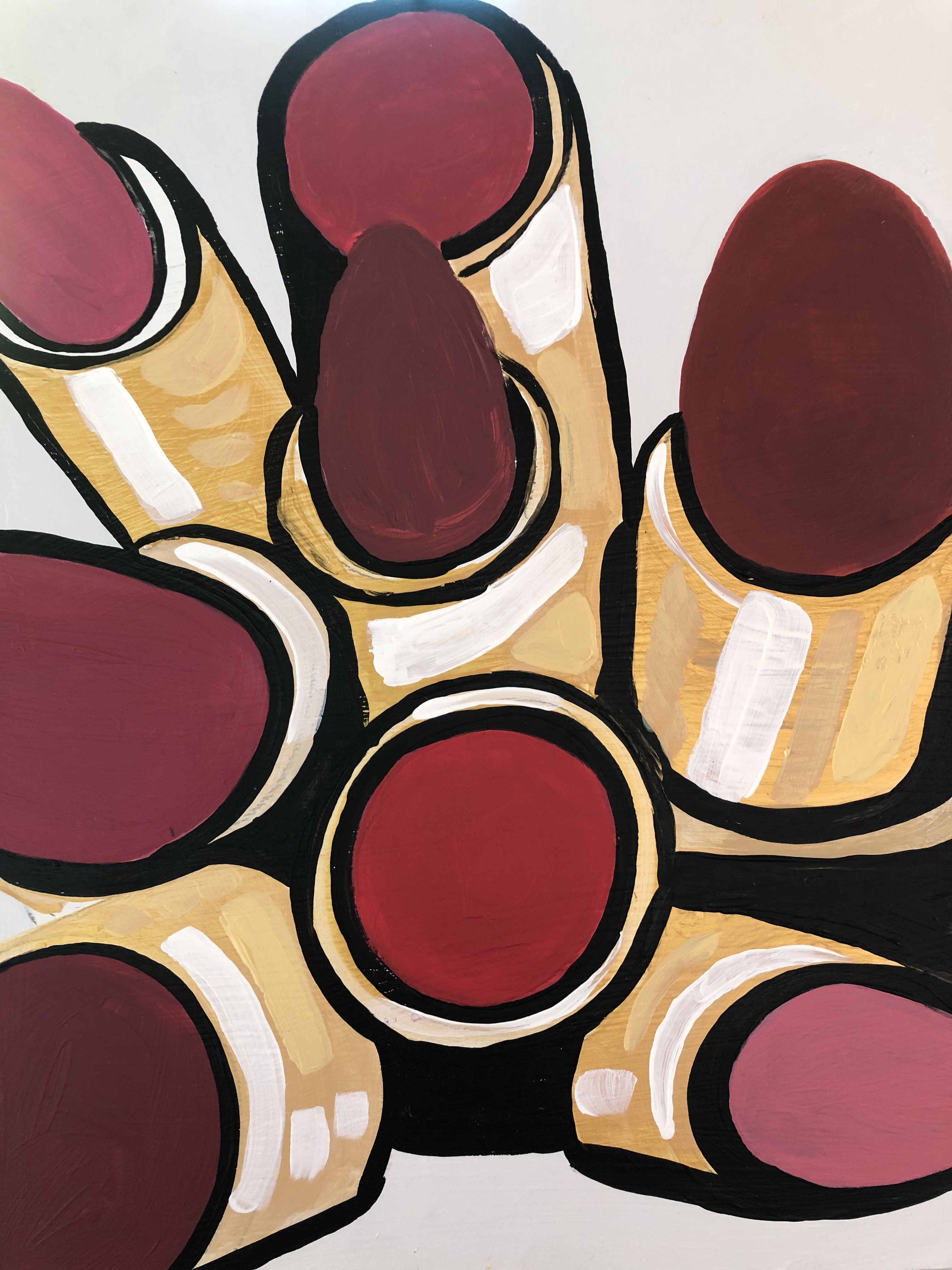 Elkins How to Use Your Eyes enhanced my observation skills to slow down to consider composition in a new way and break down the colors into small parts. I thought about the side view or slightly above compositions of Wayne Thiebauds cakes, lollipops and hotdogs. The birds eye view became interesting in that the flattening of color and condensed reflections of white and gold becoming shapes.