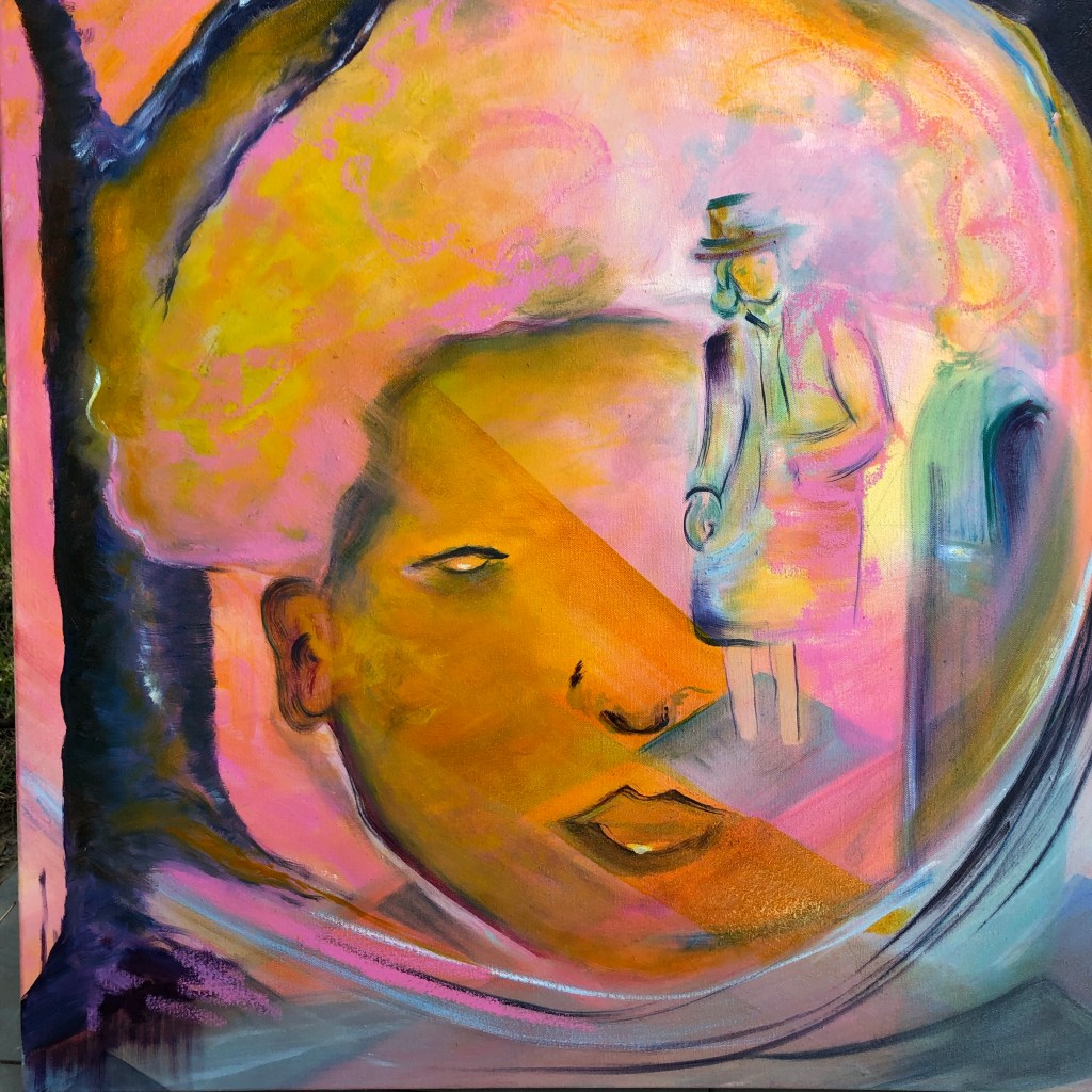 The relationship of pink and blue mingle to join other hues to navigate their place.