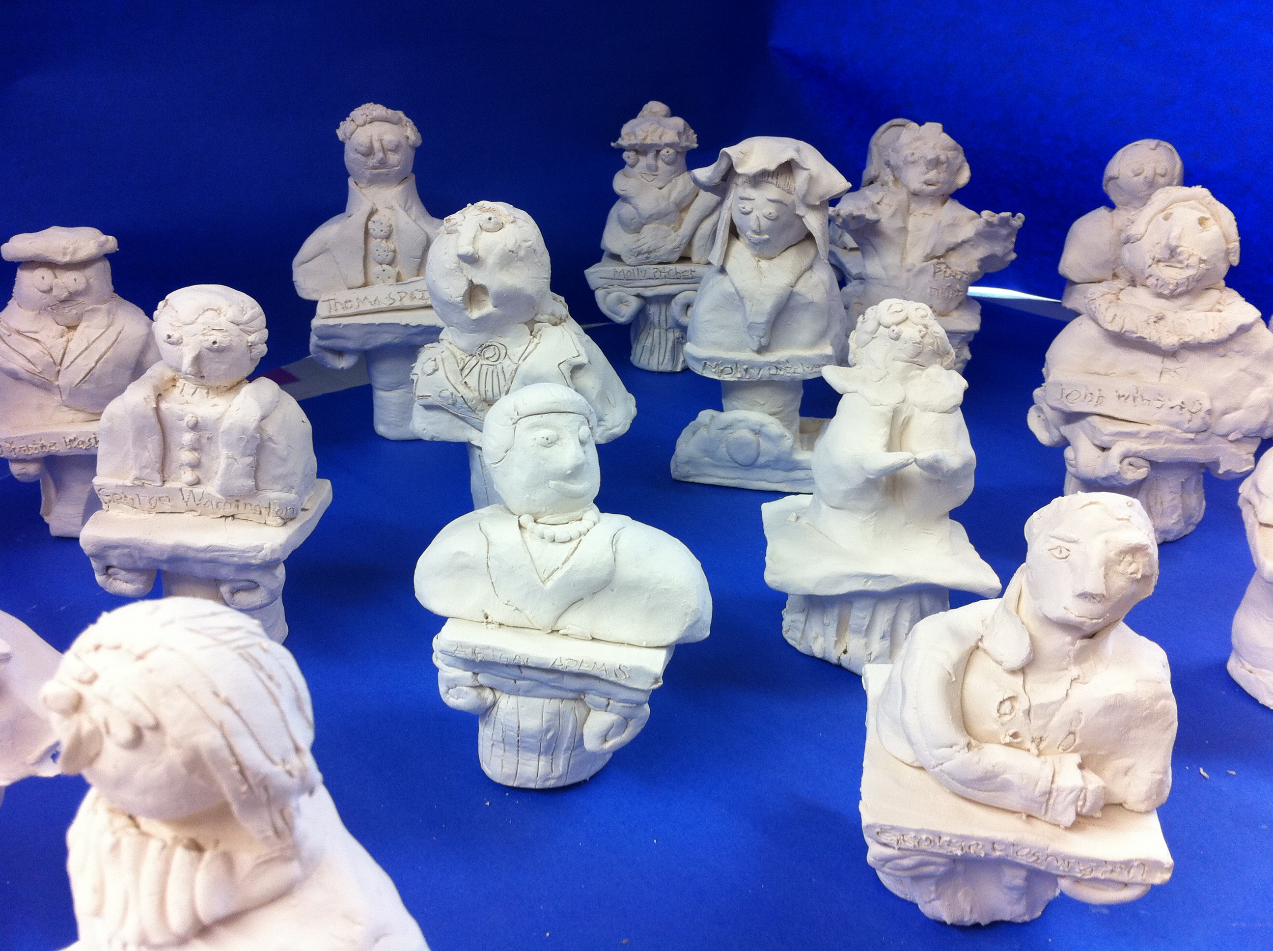 The power, the pride, and the excitement these fresh fired clay busts secretly keep inside them! Except for maybe the one yawning in the middle:). Let me tell you about the power they felt too, our students, as they straightened their shoulders. The pride in making Paul Revere’s hat by simply folding a clay taco over a clay ball and in my excitement too, the recognition of the types of columns they learned in 3rd grade. One of my favorite projects that reminds students of the lasting efforts our early Americans made, the innovation of Ben Franklin & others and the tradition of portraiture, oh how it’s changed! I love that this artsaysthat: we are strong, we are one, we are the people! Would the style of your portrait be traditional? What materials would you use?
